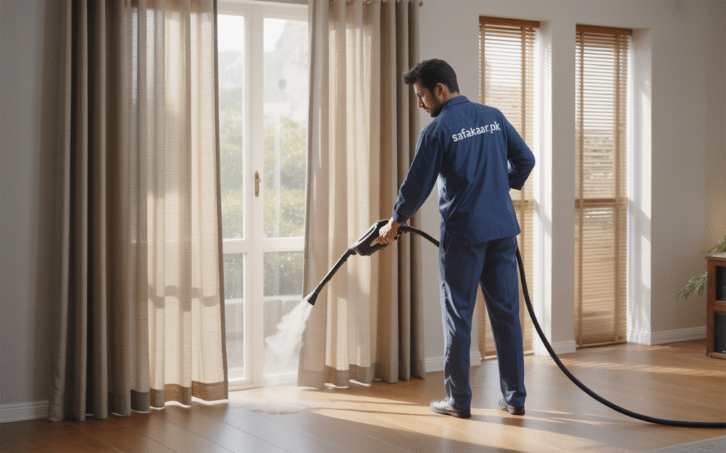 Revive the look of your home or office with our specialized curtains and blinds cleaning service. At Safakaar, we remove dust, pollutants, and allergens from your window coverings using safe, fabric-friendly methods that restore freshness without causing shrinkage or fading. Whether your curtains are heavy or delicate, or your blinds are vertical, horizontal, or roller-style — our expert team ensures spotless results across Islamabad and Rawalpindi.